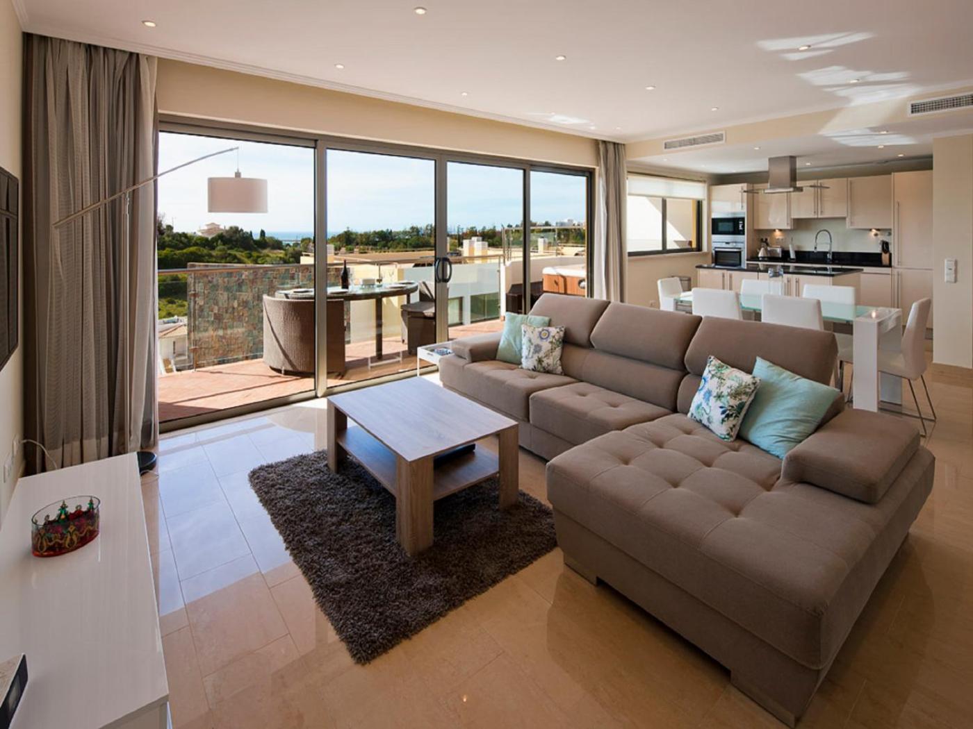 Apartamento Deluxe. Este espaçoso apartamento inclui uma sala de estar, 3 quartos separados e uma casa de banho com um chuveiro e um bidé. Na cozinha totalmente equipada, os hóspedes encontrarão uma placa de fogão, um frigorÃfico, uma máquina de lavar louça e utensÃlios de cozinha. O apartamento climatizado beneficia ainda de uma televisão com canais por satélite, uma máquina de lavar roupa, uma área de estar, uma área de refeições e vista mar. A unidade tem 5 camas. ;