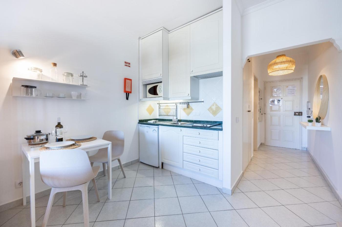 Apartamento Estúdio. Meals can be prepared in the well-fitted kitchen, which has a refrigerator, kitchenware, a microwave and a tea and coffee maker. This air-conditioned studio is comprised of a TV with satellite channels, a private bathroom as well as a terrace with sea views. The unit has 1 bed.