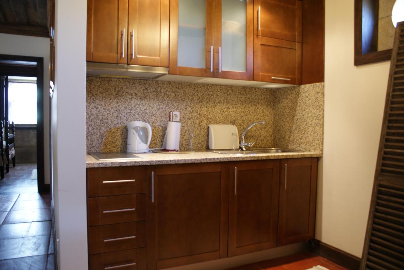 Há também uma cozinha equipada com um frigorífico, um micro-ondas e uma placa de fogão em algumas unidades.