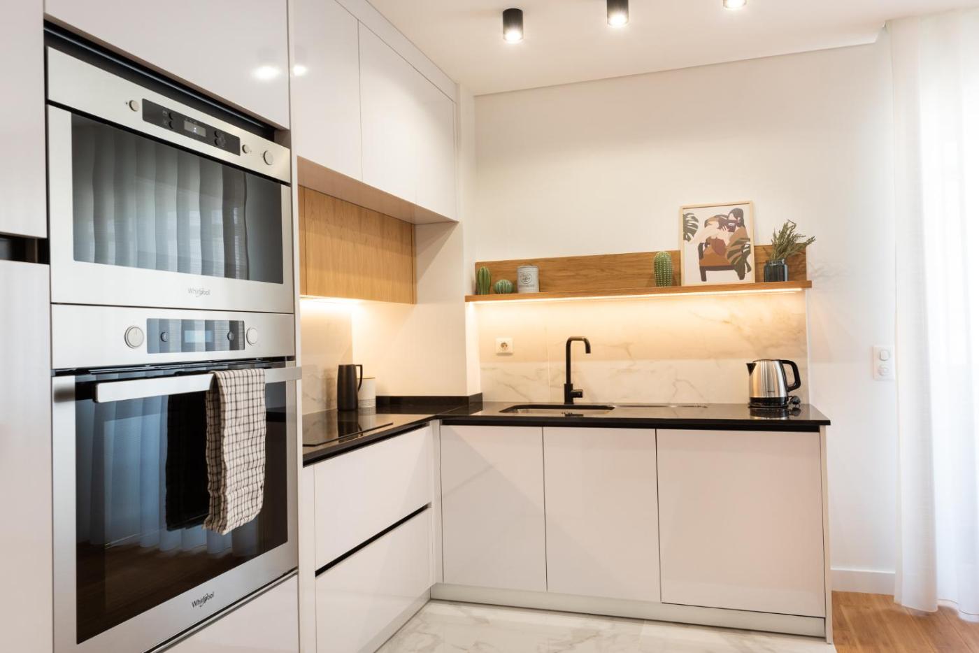 Este apartamento tem 1 quarto, uma sala de estar, uma cozinha totalmente equipada com frigorífico e máquina de café, e 1 casa de banho com bidé e chuveiro. Toalhas e roupa de cama são providenciadas neste apartamento.
