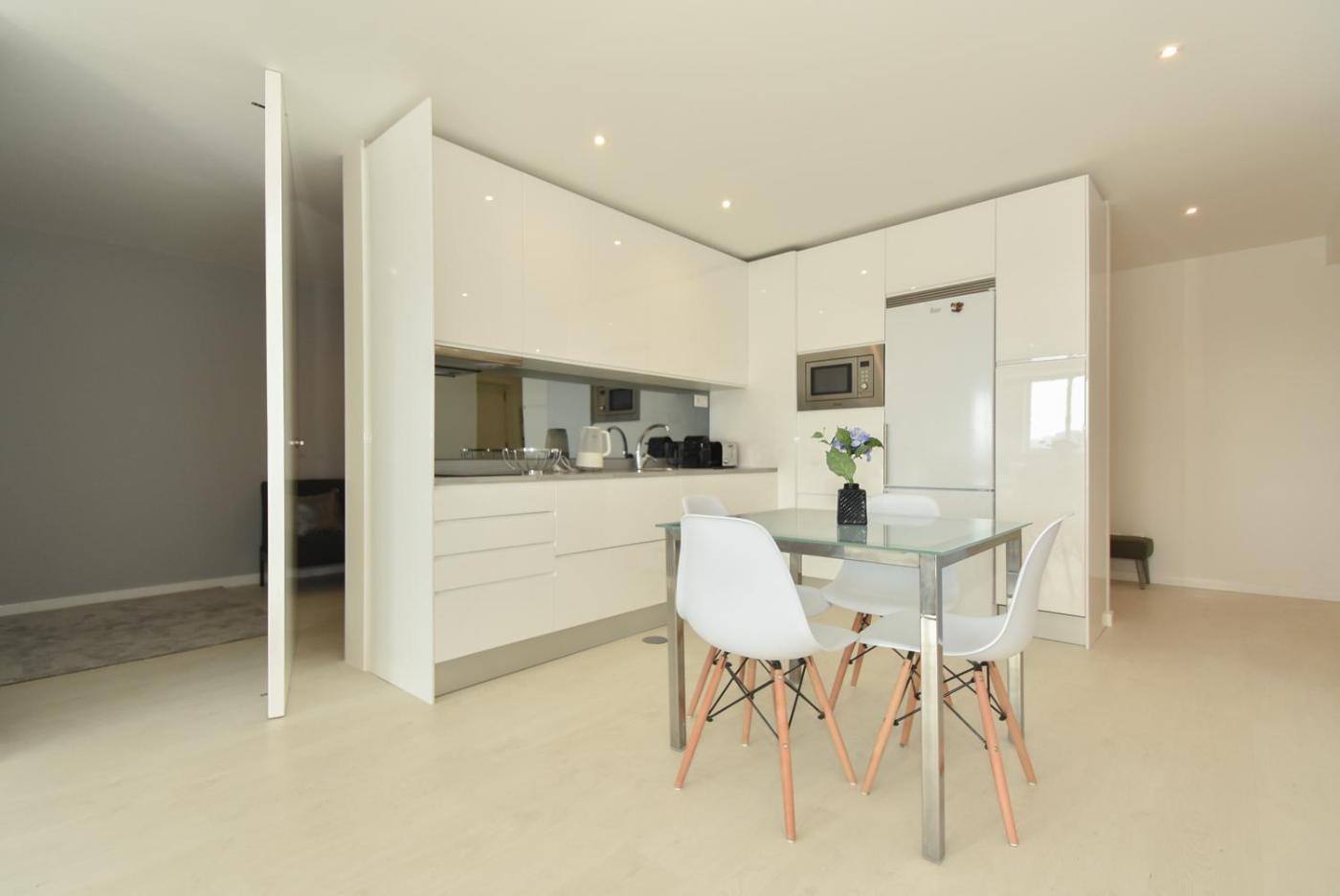 Este apartamento com 1 quarto dispõe de uma sala de estar com uma televisão de ecrã plano com canais por cabo, uma kitchenette totalmente equipada com frigorÃfico e máquina de lavar louça, e 1 casa de banho com produtos de higiene pessoal gratuitos. Toalhas e roupa de cama são providenciadas neste apartamento.